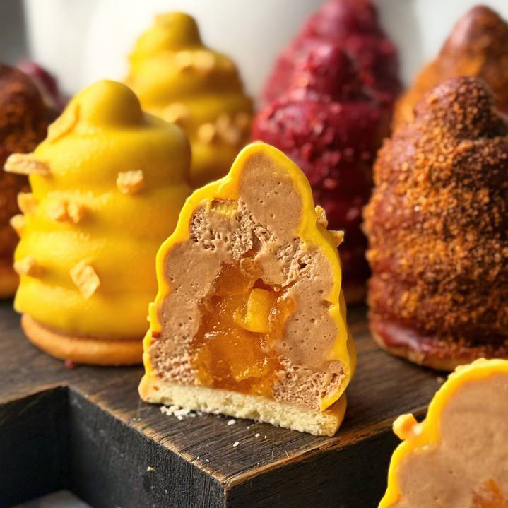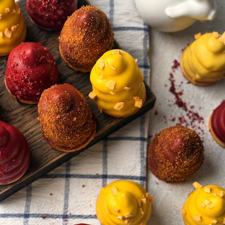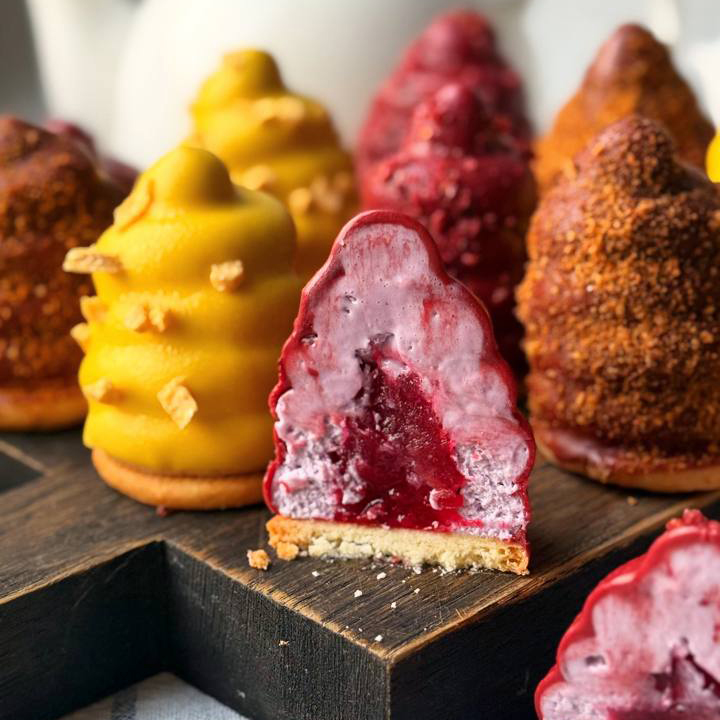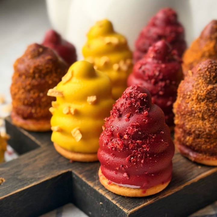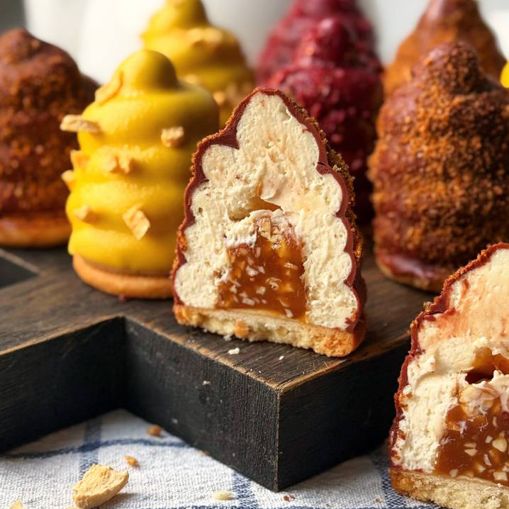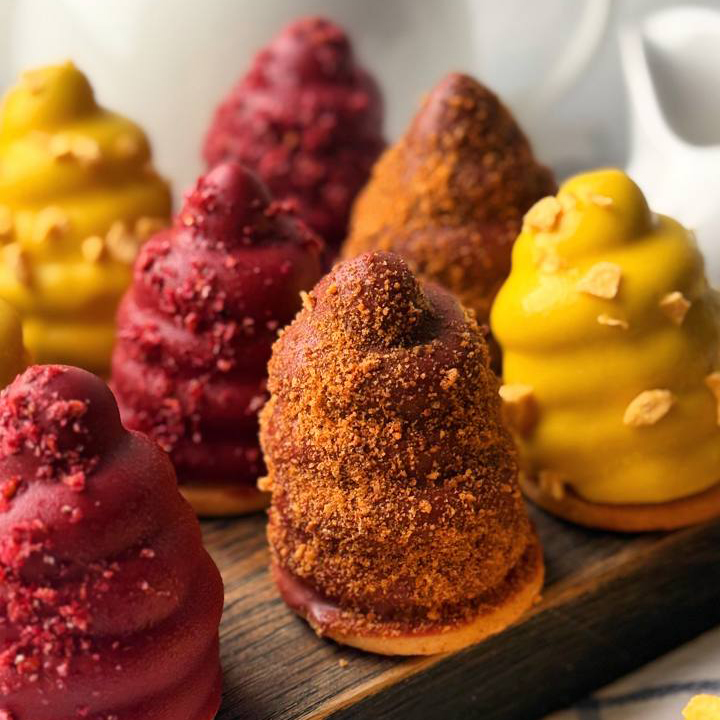 Порционные десерты Whip&Chrisp — авторский урок с хрустящей основой, крем-ганашем и сочной начинкой. Вкусы: карамель, ягоды, манго.