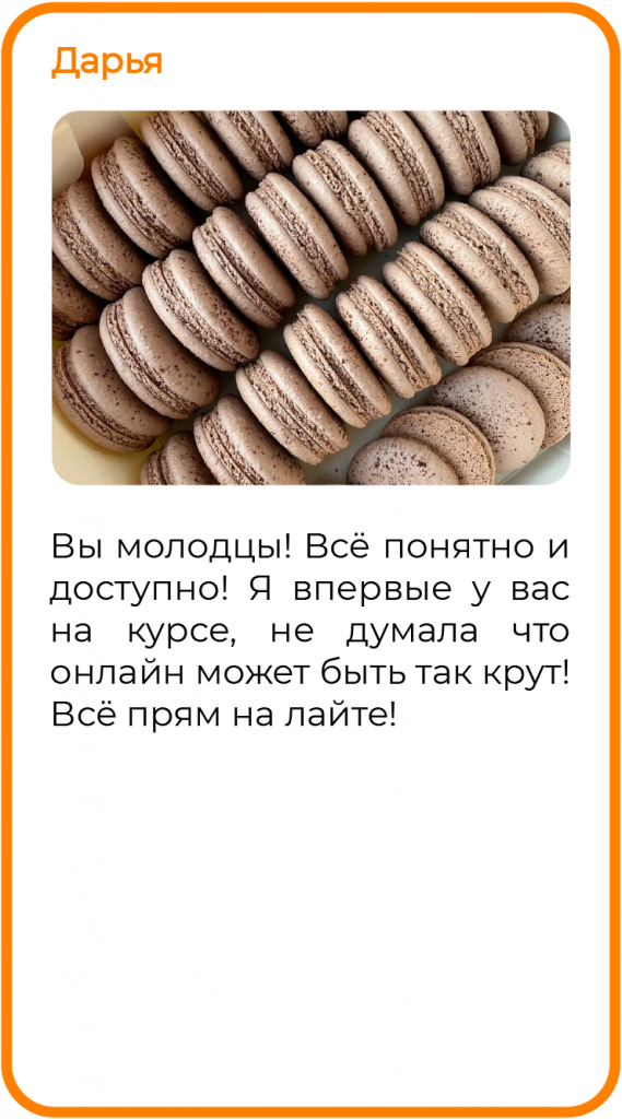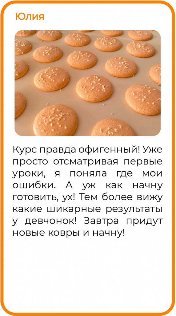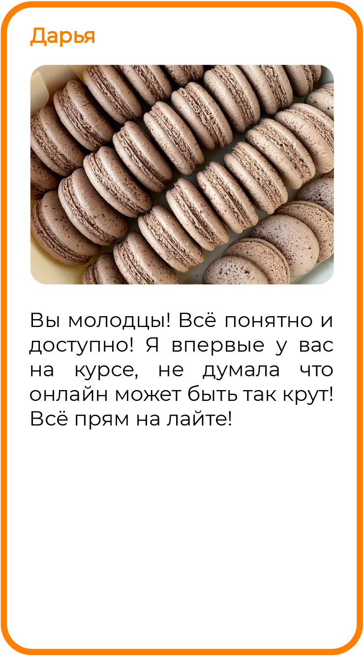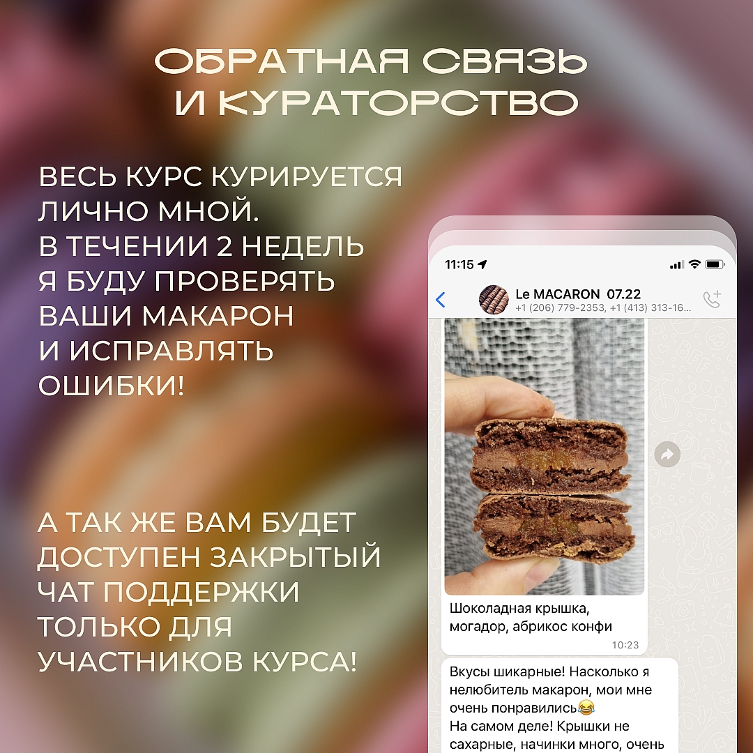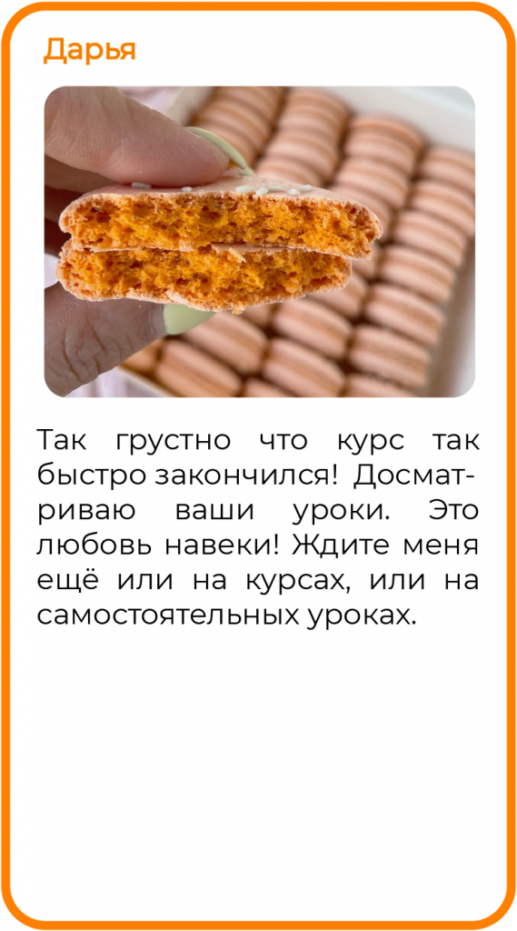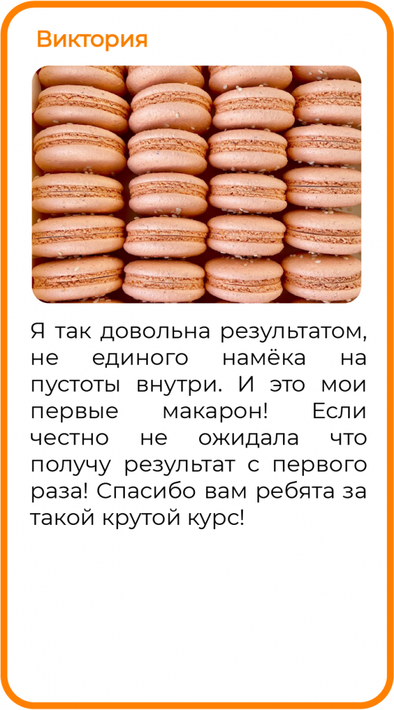 Макарон-сколько же историй и мифов летает вокруг этого десерта, а сколько страхов у кондитеров…многие даже боятся начинать! Ведь неудачных историй в интернете множество! На самом же деле в этом десерте нет абсолютно ничего сложного! Здесь, как и в любом другом десерте, важно понимание всех процессов, и когда у вас не останется ни одного вопроса, тогда вы с легкостью будете печь макарон в любой духовке и на любом ковре! На нашем курсе LE MACARON мы подробно изучаем две технологии приготовления макарон, учимся понимать процесс изнутри, понимать ошибки, видеть их и исправлять! Учимся самостоятельно создавать свои авторские вкусы, учимся готовить разные начинки, а также просто классно проводим время и находим новых друзей и единомышленников! Макарон — это десерт, который продаётся всегда! Такой десерт просто обязан быть в линейке любого успешного кондитера! Присоединяйся к нам и научись за одну неделю создавать свои идеальные макарон с нуля!