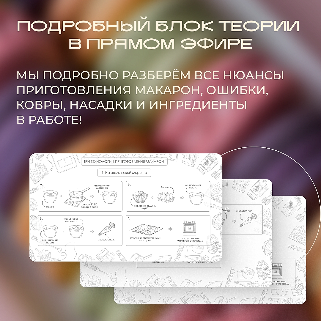 ТРИ ИНТЕНСИВНЫХ ДНЯ В РЕЖИМЕ LIVE-ЭФИРОВ С ИЗУЧЕНИЕМ ТЕХНОЛОГИЙ ПРИГОТОВЛЕНИЯ КРЫШЕК МАКАРОН
