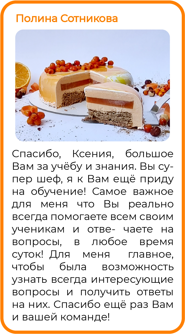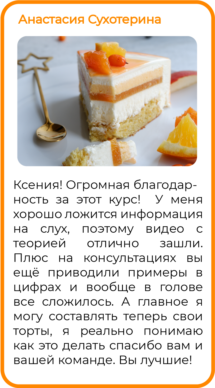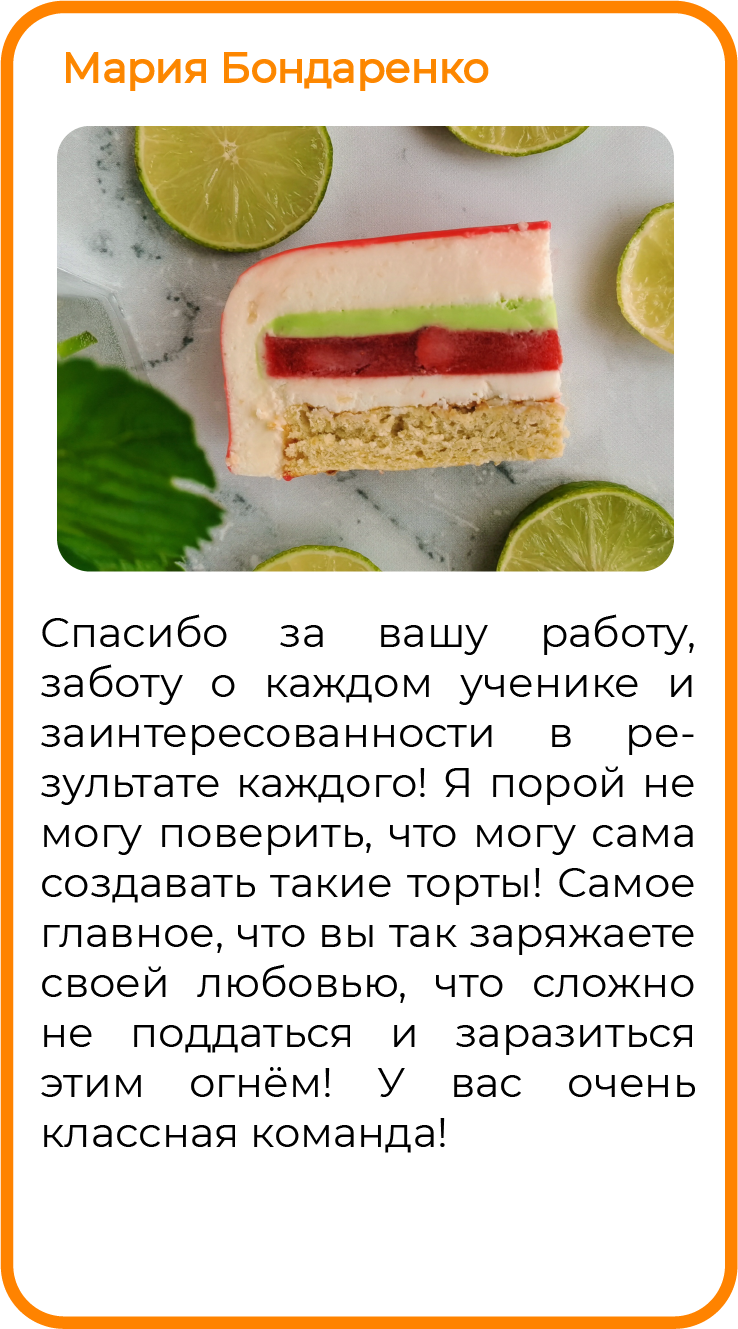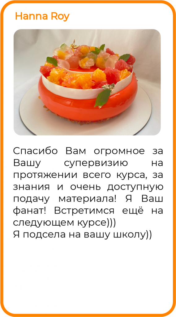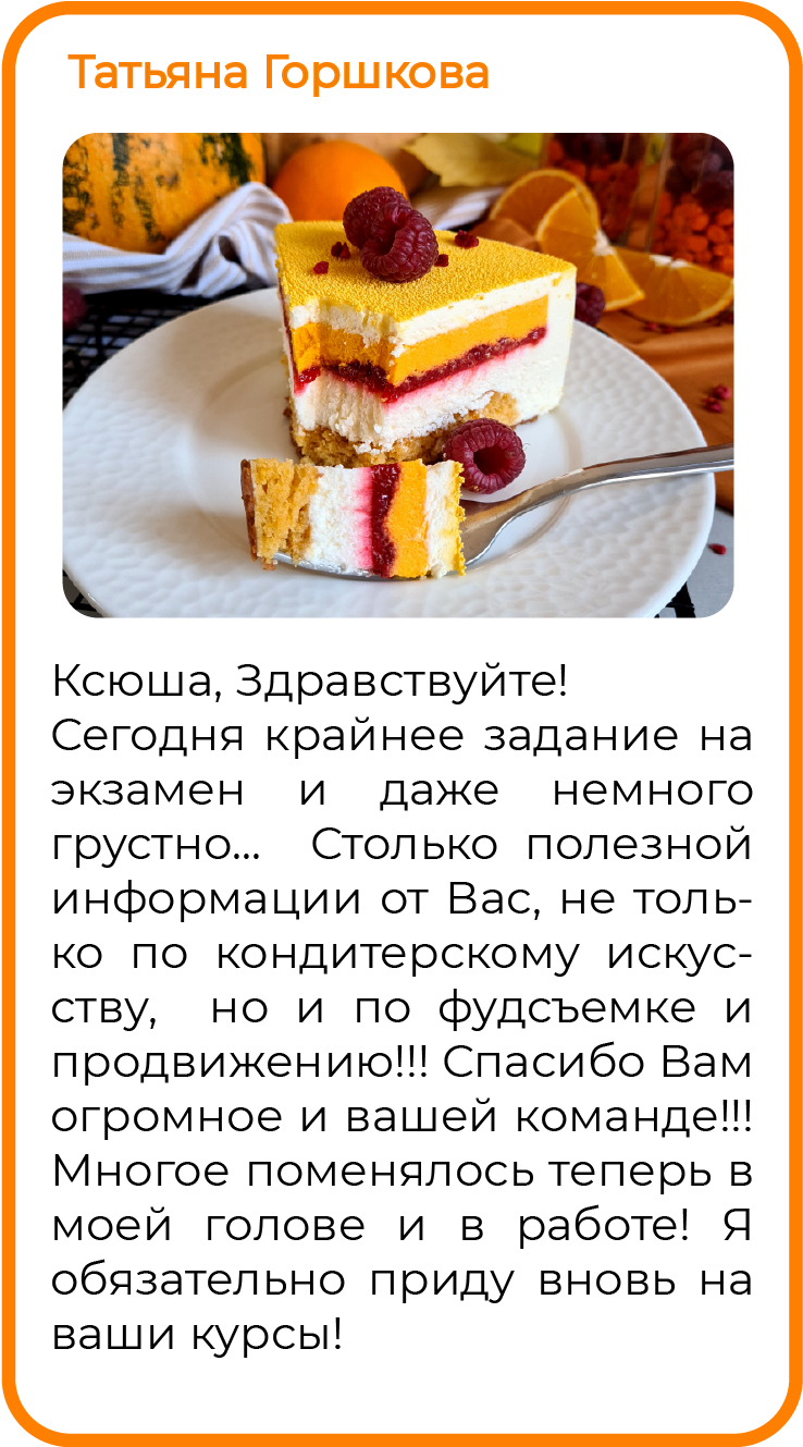Этот курс мы хотели давно запустить, ведь огромное количество ребят хотят научиться готовить муссовые десерты с нуля. Если ты ни разу ни готовил таких десертов, но очень хочешь научиться с нуля — то этот курс для тебя. Если ты кондитер и делаешь бисквитные торты и хочешь разбавить свою линейку десертов новыми техниками и вкусами то этот курс тоже для тебя. Если ты работаешь с муссовыми тортами, но тебе не хватает вдохновение, и хочется разнообразия, новых текстур, то этот курс так же идеально подходит для тебя. Здесь мы от и до разберем мои любимые муссовые десерты, поговорим о технологиях приготовления начинок, бисквитов,муссов, научимся правильно собирать такие десерты, научимся работать с желирующими агентами, научимся пересчитывать рецепты на разные формы, научимся красиво снимать эти десерты. Научимся их понимать изнутри. После этого курса вы без труда сможете комбинировать разные текстуры и слои и создавать свои новые сочетание вкусов и текстур. После этого курса приготовление муссового торта от начала и до конца у вас будет занимать всего 1.5 часа. Мы так же подробно разберем все основные покрытия, зеркальную глазурь, велюр, эффект леопарда. В течении месяца вы будете под руководством шефа поэтапно проходить теоретические основы, готовить заготовки и начинки и потом собирать свои первые муссовые торты, вы удивитесь тому, как на простой домашней кухне можно создавать настоящие шедевры. Весь курс курируется лично шефом. Мы ждем тебя в нашу команду.