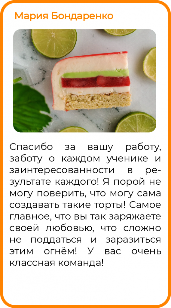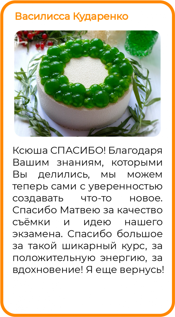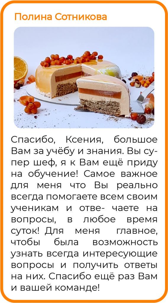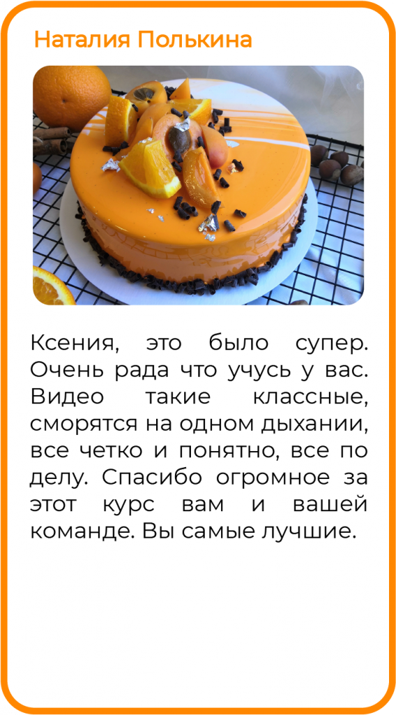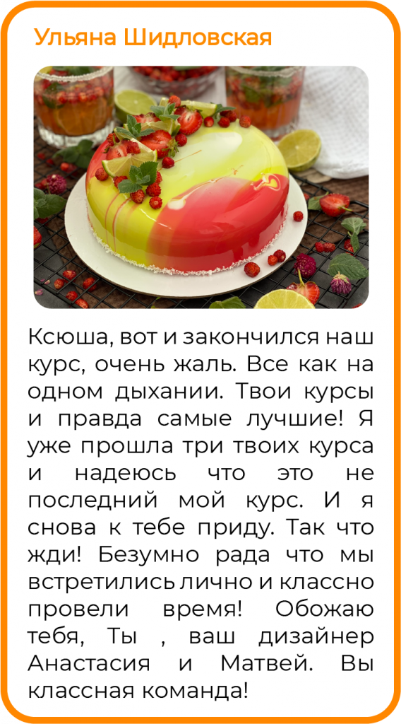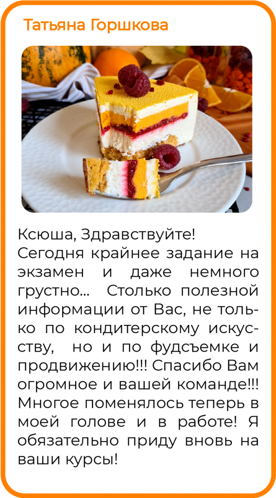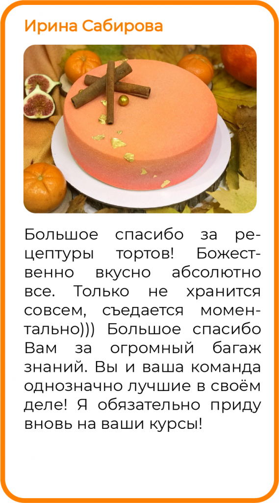 Этот курс мы хотели давно запустить, ведь огромное количество ребят хотят научиться готовить муссовые десерты с нуля. Если ты ни разу ни готовил таких десертов, но очень хочешь научиться с нуля — то этот курс для тебя. Если ты кондитер и делаешь бисквитные торты и хочешь разбавить свою линейку десертов новыми техниками и вкусами то этот курс тоже для тебя. Если ты работаешь с муссовыми тортами, но тебе не хватает вдохновение, и хочется разнообразия, новых текстур, то этот курс так же идеально подходит для тебя. Здесь мы от и до разберем мои любимые муссовые десерты, поговорим о технологиях приготовления начинок, бисквитов,муссов, научимся правильно собирать такие десерты, научимся работать с желирующими агентами, научимся пересчитывать рецепты на разные формы, научимся красиво снимать эти десерты. Научимся их понимать изнутри. После этого курса вы без труда сможете комбинировать разные текстуры и слои и создавать свои новые сочетание вкусов и текстур. После этого курса приготовление муссового торта от начала и до конца у вас будет занимать всего 1.5 часа. Мы так же подробно разберем все основные покрытия, зеркальную глазурь, велюр, эффект леопарда. В течении месяца вы будете под руководством шефа поэтапно проходить теоретические основы, готовить заготовки и начинки и потом собирать свои первые муссовые торты, вы удивитесь тому, как на простой домашней кухне можно создавать настоящие шедевры. Весь курс курируется лично шефом. Мы ждем тебя в нашу команду.