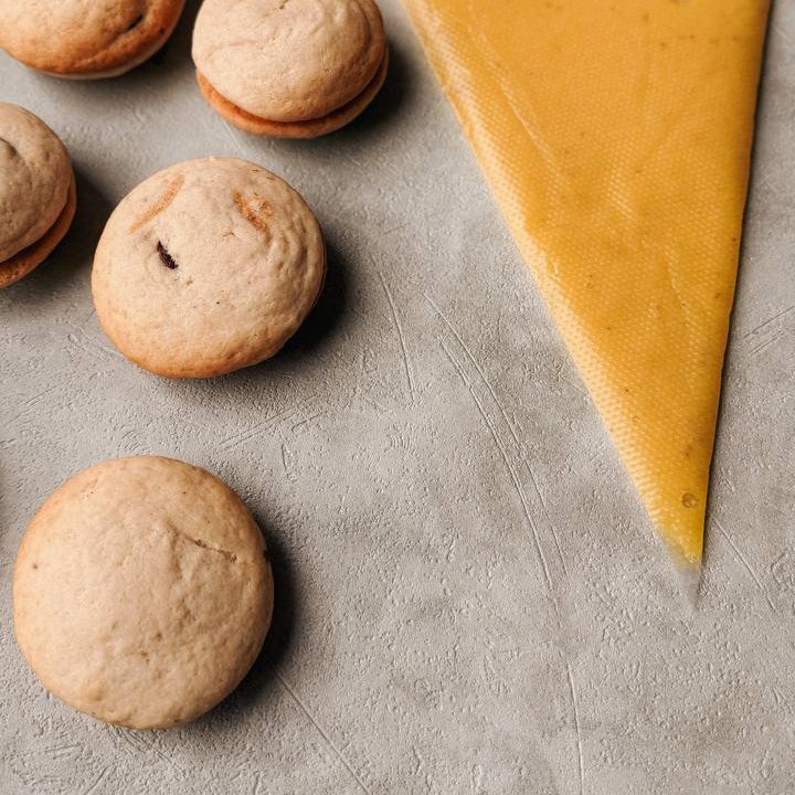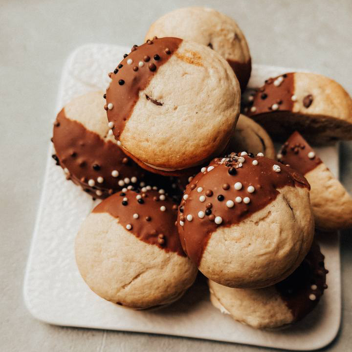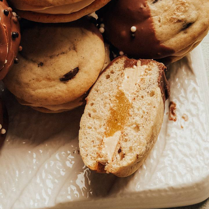 Настоящие домашние choco pie с банановым центром, шоколадными дропсами и солёной карамелью.